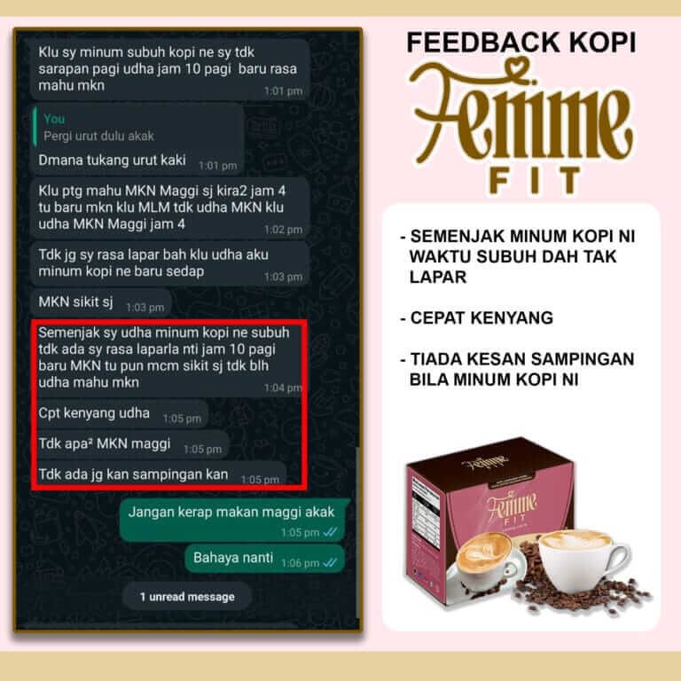 Boleh, Femne Kopi diperbuat daripada herba semula jadi tanpa gula tambahan dan tanpa bahan kimia berbahaya. Ramai pengguna yang ada kencing manis, darah tinggi atau kolesterol tinggi amalkan Femne Kopi dan rasa badan lebih ringan dan bertenaga.